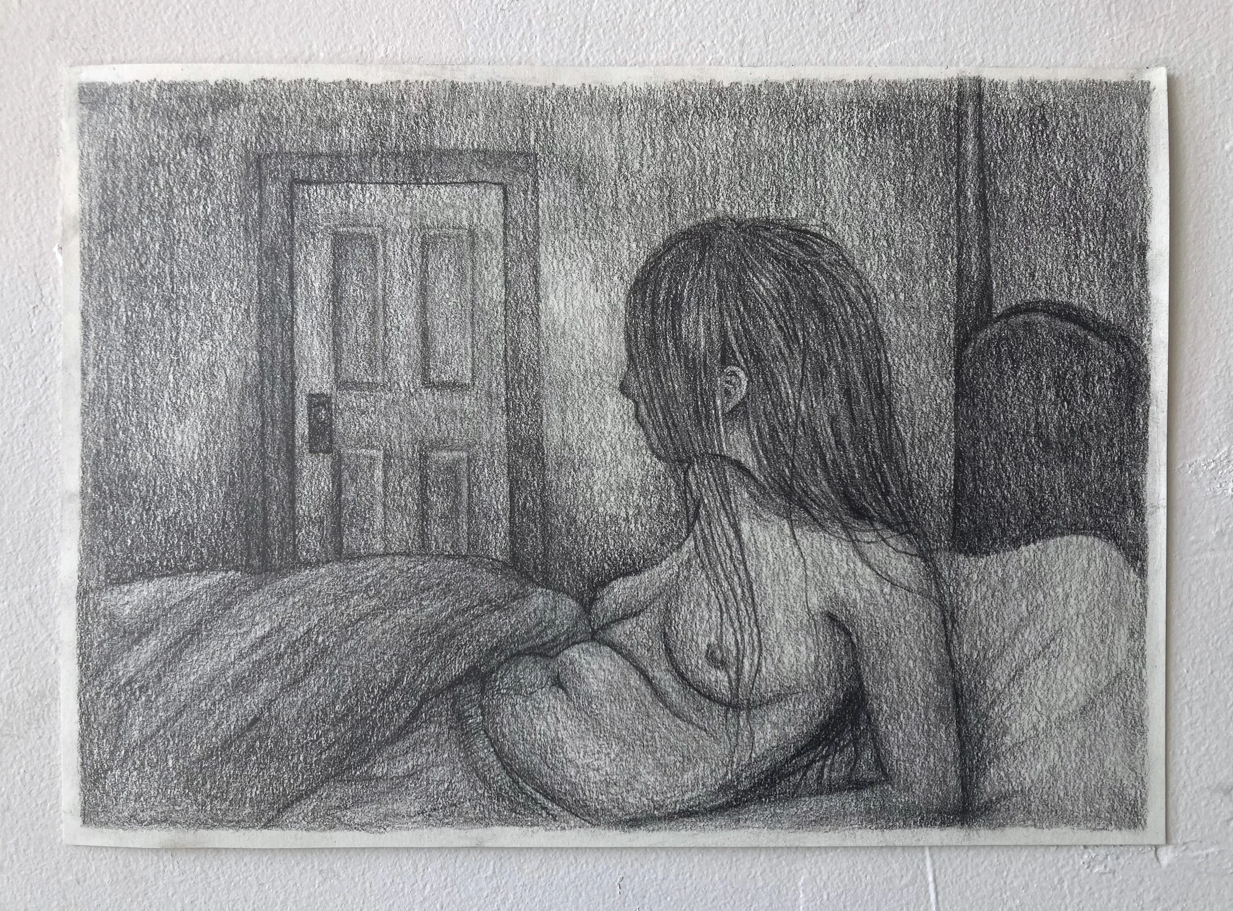 Between Sleeps, 9" x 13", Graphite on paper, 2025